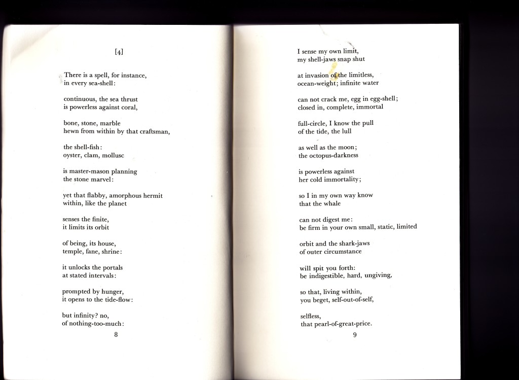 One of the songs on our new record is called “Palest Pearl,” and it was partially inspired by a poem written by the poet H.D. (Hilda Doolittle) published in 1944 in her book The Walls Do Not Fall. It’s the fourth poem in the series, and I found it to be such a potent and beautiful expression of a feeling that I think on some level we all know well. It’s that feeling of wanting to shut down to the things around us and allow our shell jaws to snap shut completely and shut out the swirling waters of our emotions to prevent them from becoming a factor in how we proceed.