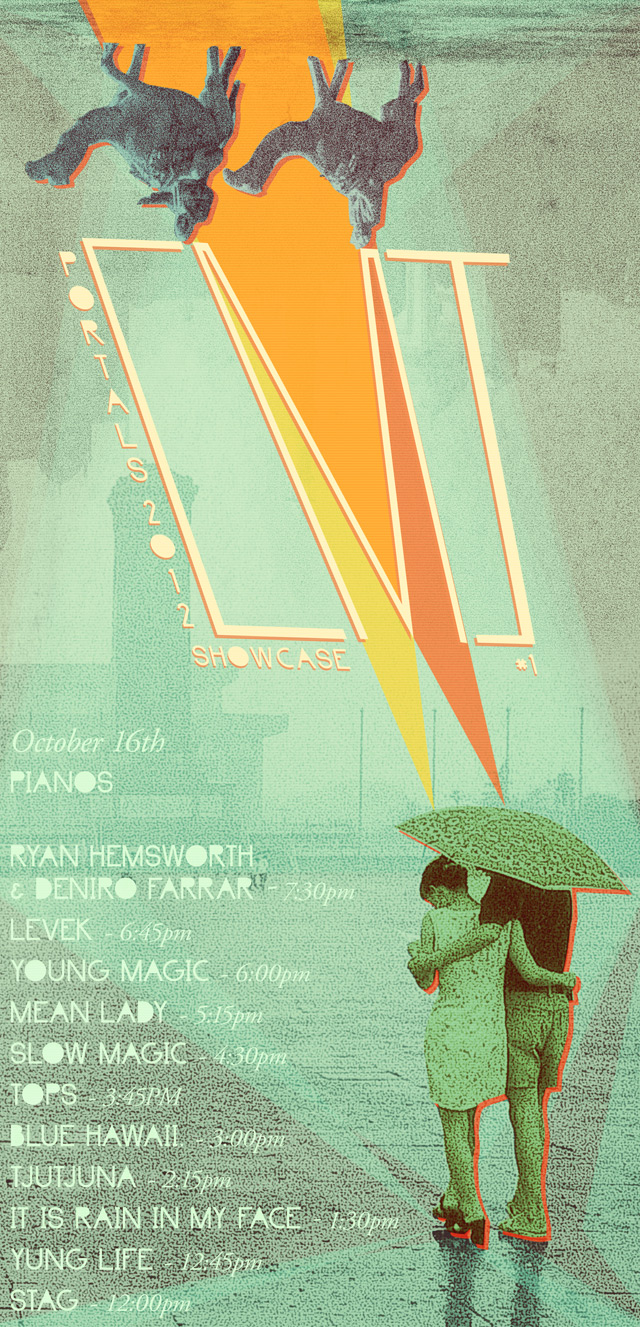 On October 16th PORTALS will make its grand CMJ entrance. That afternoon at Pianos NYC, we hope you’ll join us in celebrating some of our most beloved artists. The day will begin with StaG, continue through the sun-setting hours with Yung Life, Tjutjuna, Blue Hawaii, It Is Rain In My Face., TOPS, and into the beginning of the CMJ New York City night with Slow Magic, Mean Lady, Young Magic, Levek, and the debut collaborative performance of Ryan Hemsworth & Deniro Farrar.